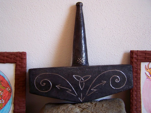 Druhý den ráno po snídani jsme se s ostatními rozloučili a Myslič s Tomasem nás vyprovodili až k autu. Pochlubil jsem se klukům hrotem Wotanova kopí a Donarovým kladivem, které pro mě Frostík ukoval a dárky se jim líbili stejně jako mě. Jsem za tyto předměty Frostíkovi opravdu vděčný, neboť už teď vím, že se stanou pevnou součástí mojí rituální výbavy. Hrot kopí hodlám nasadit na jasanovou tyč a ozdobit ji havraním peřím a runami. Hotové kopí budu pak používat k vymezování posvátného prostoru. Kladivo budu užívat jako posvátný předmět ochrany a žehnání. Frostíku, díky!